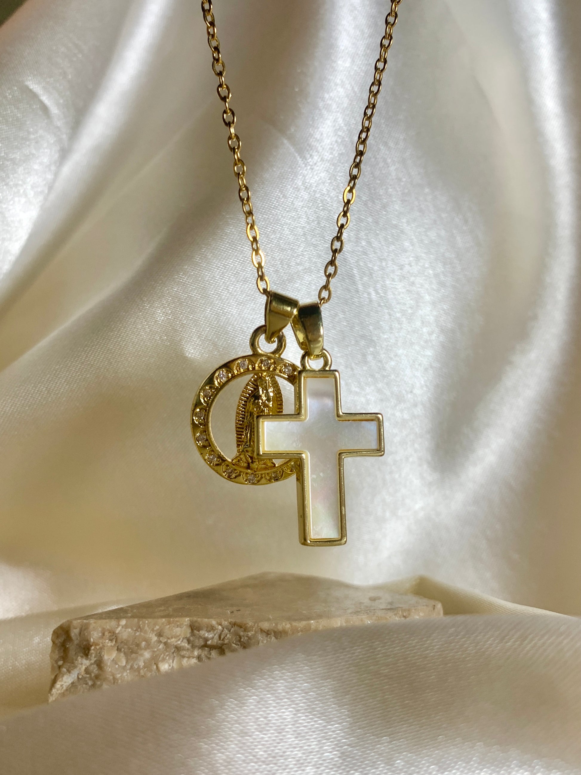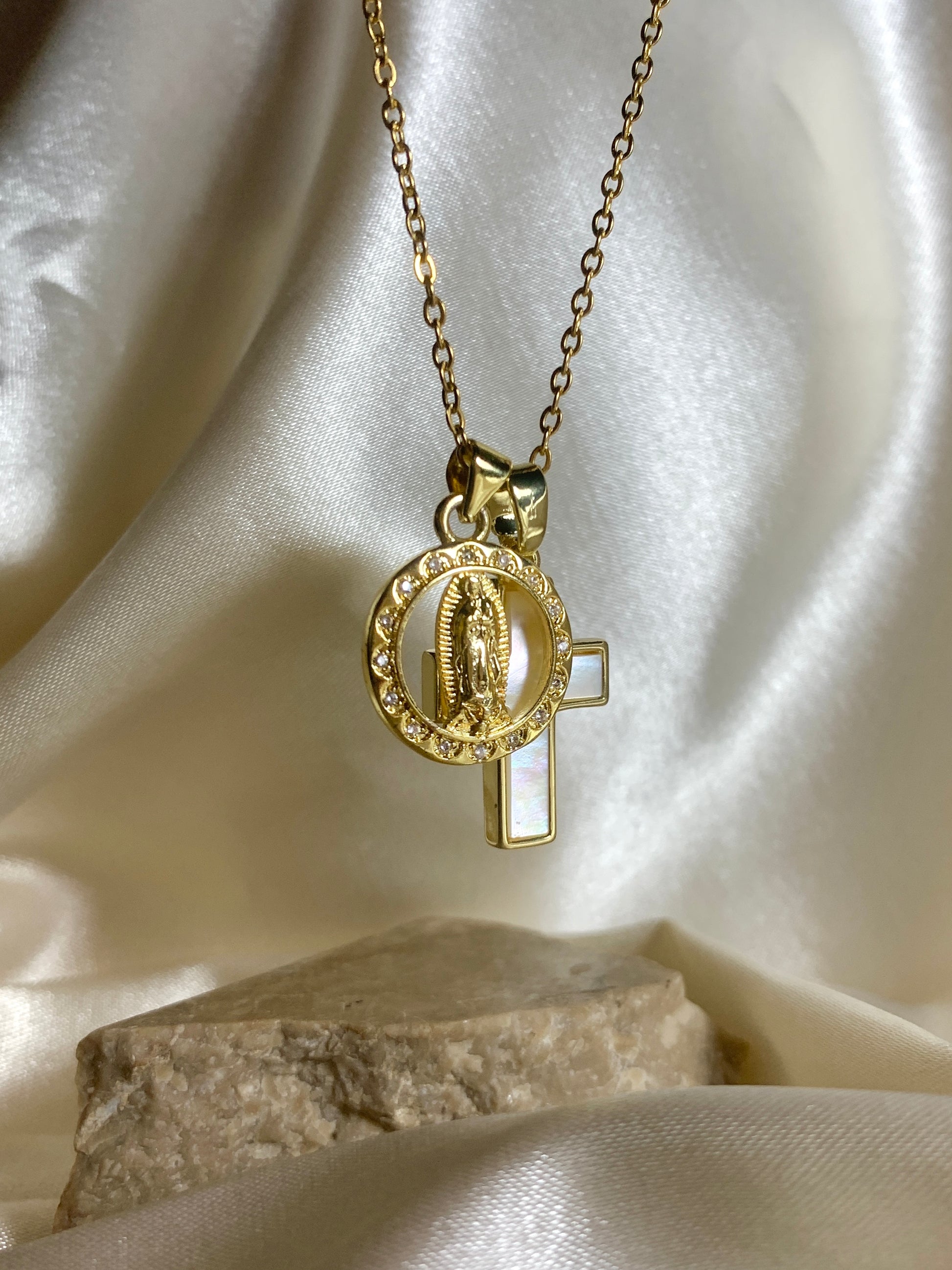 Our Pearl Cross and Our Lady of Guadalupe pendant showcases purity and elegance. It serves as a tangible connection to the divine, offering comfort and strength to believers, especially in times of adversity.