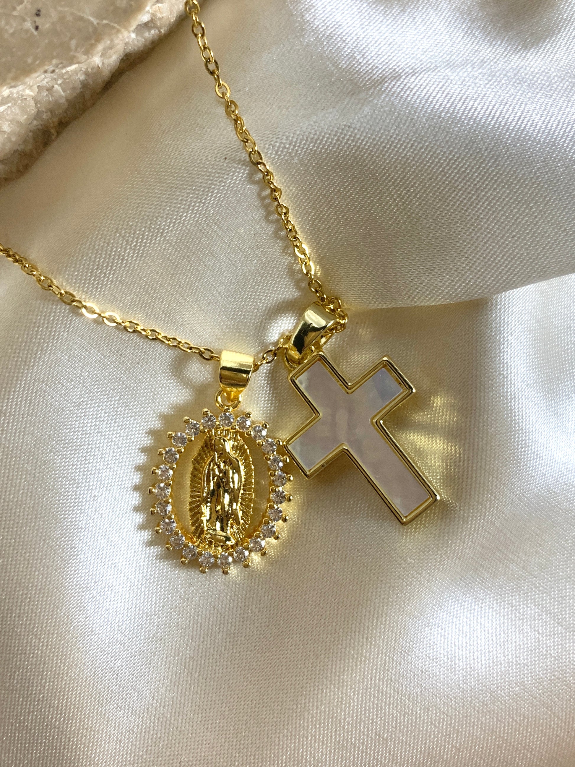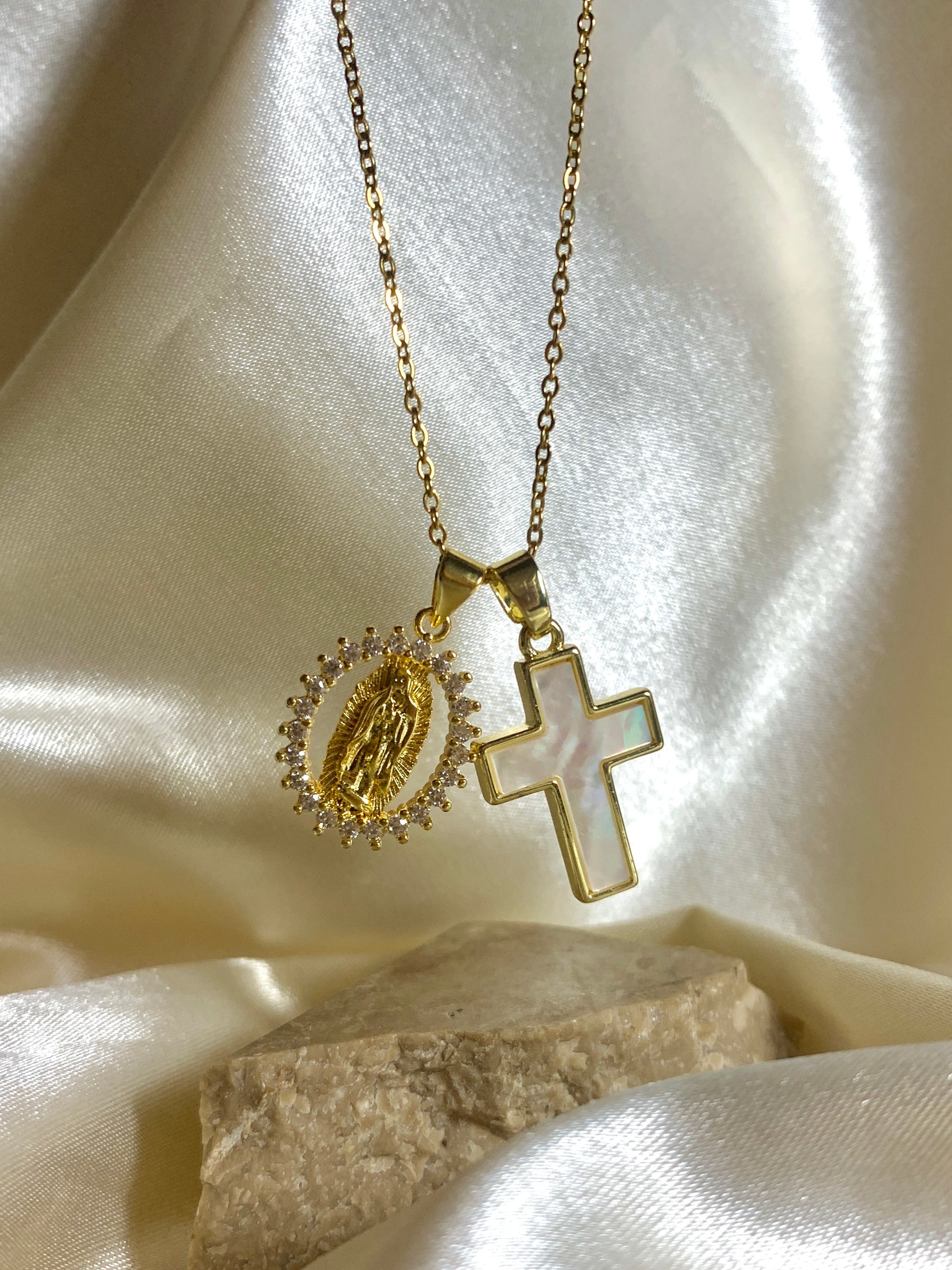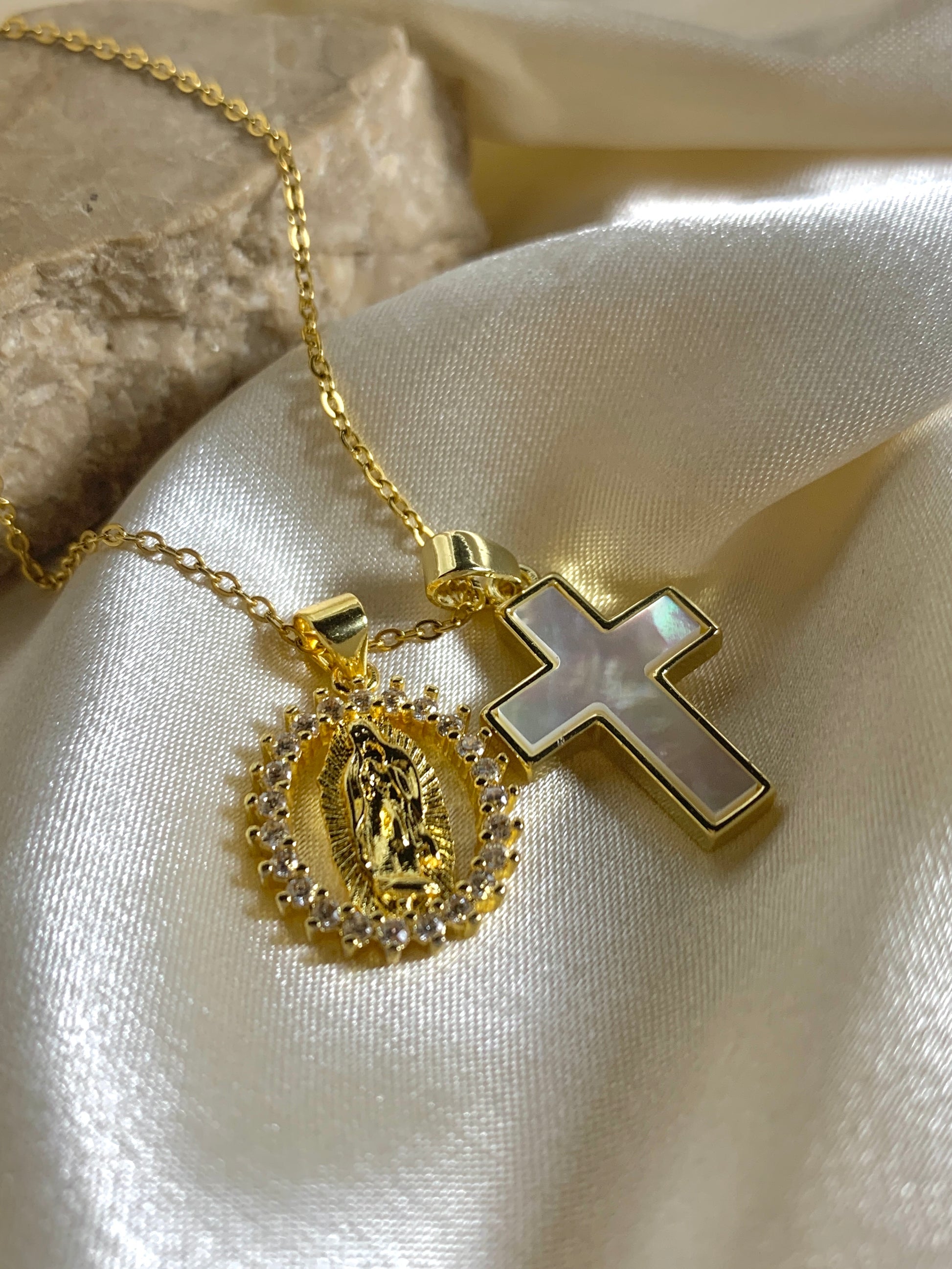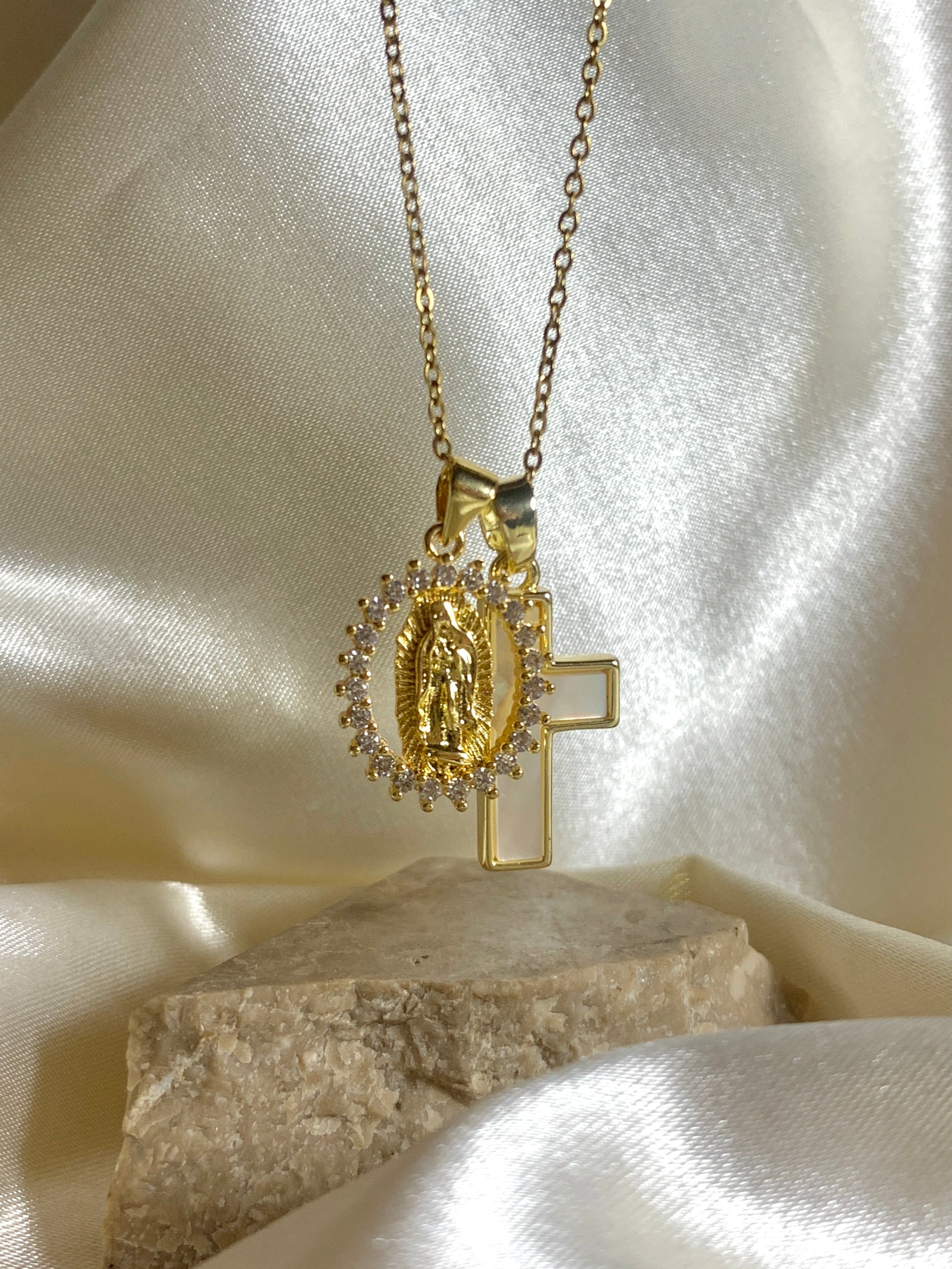 Our Pearl Cross and Our Lady of Guadalupe pendant showcases purity and elegance. It serves as a tangible connection to the divine, offering comfort and strength to believers, especially in times of adversity.