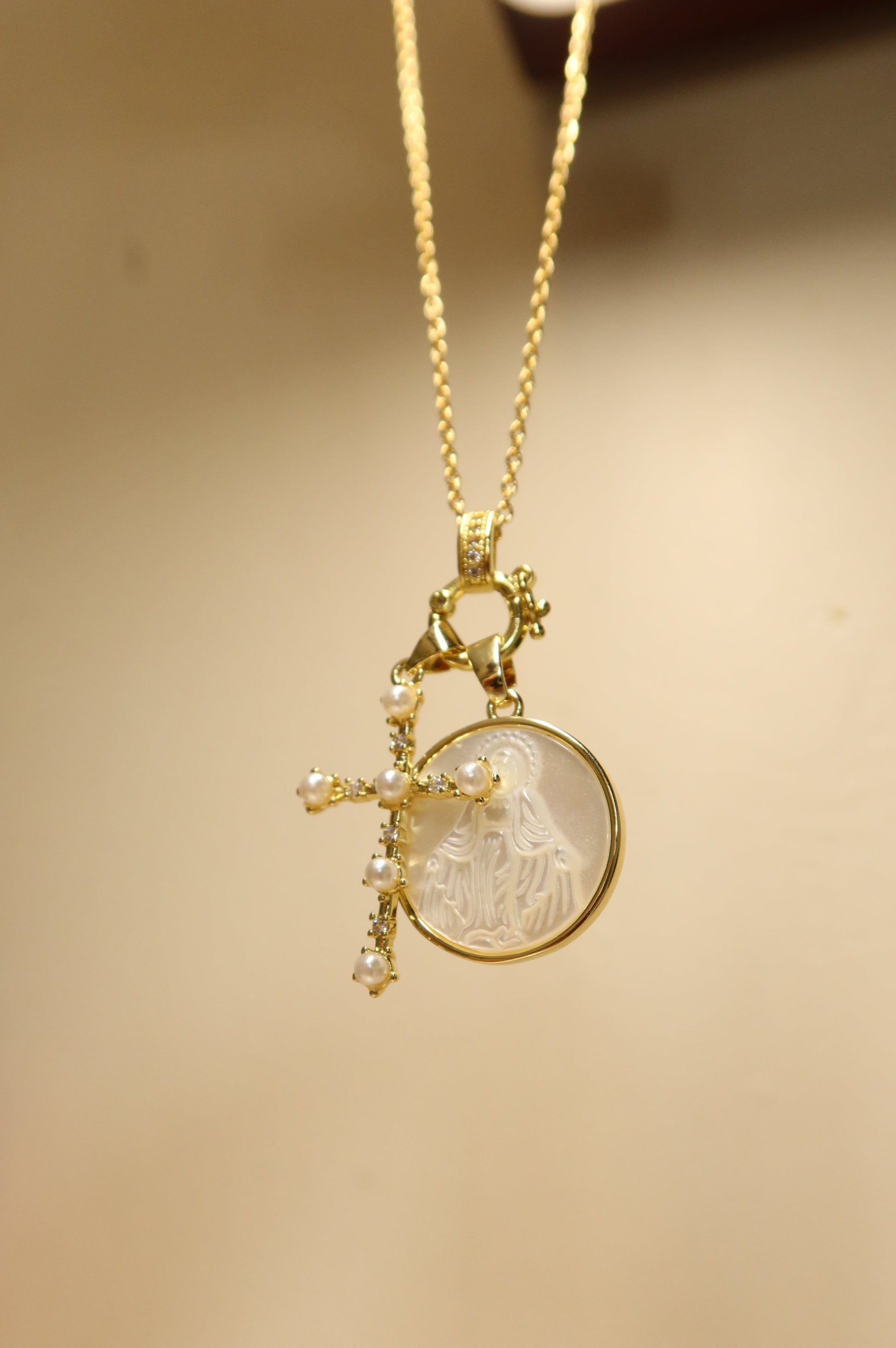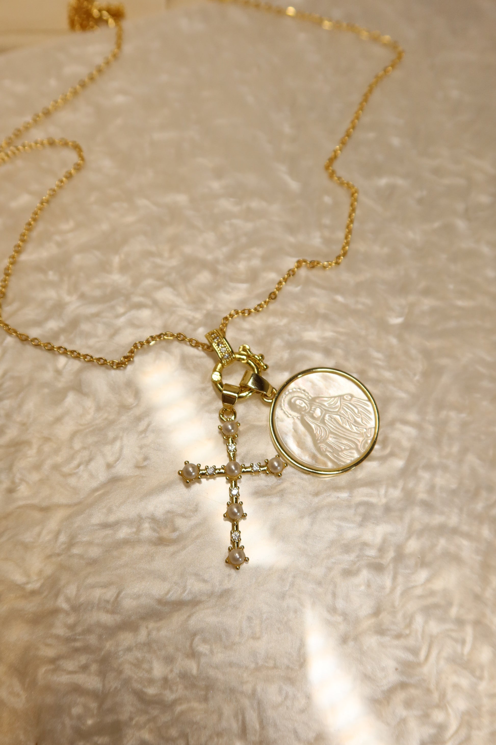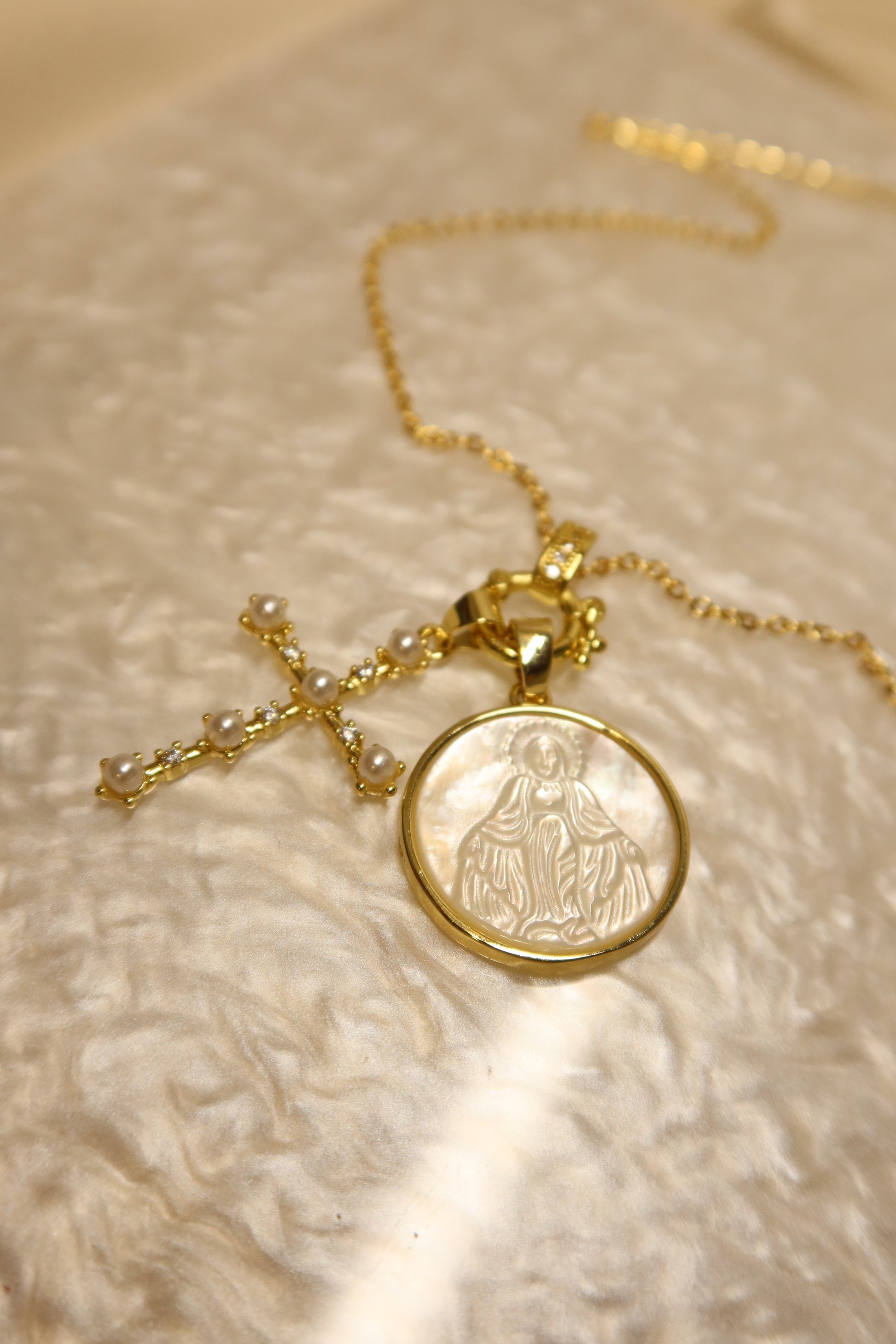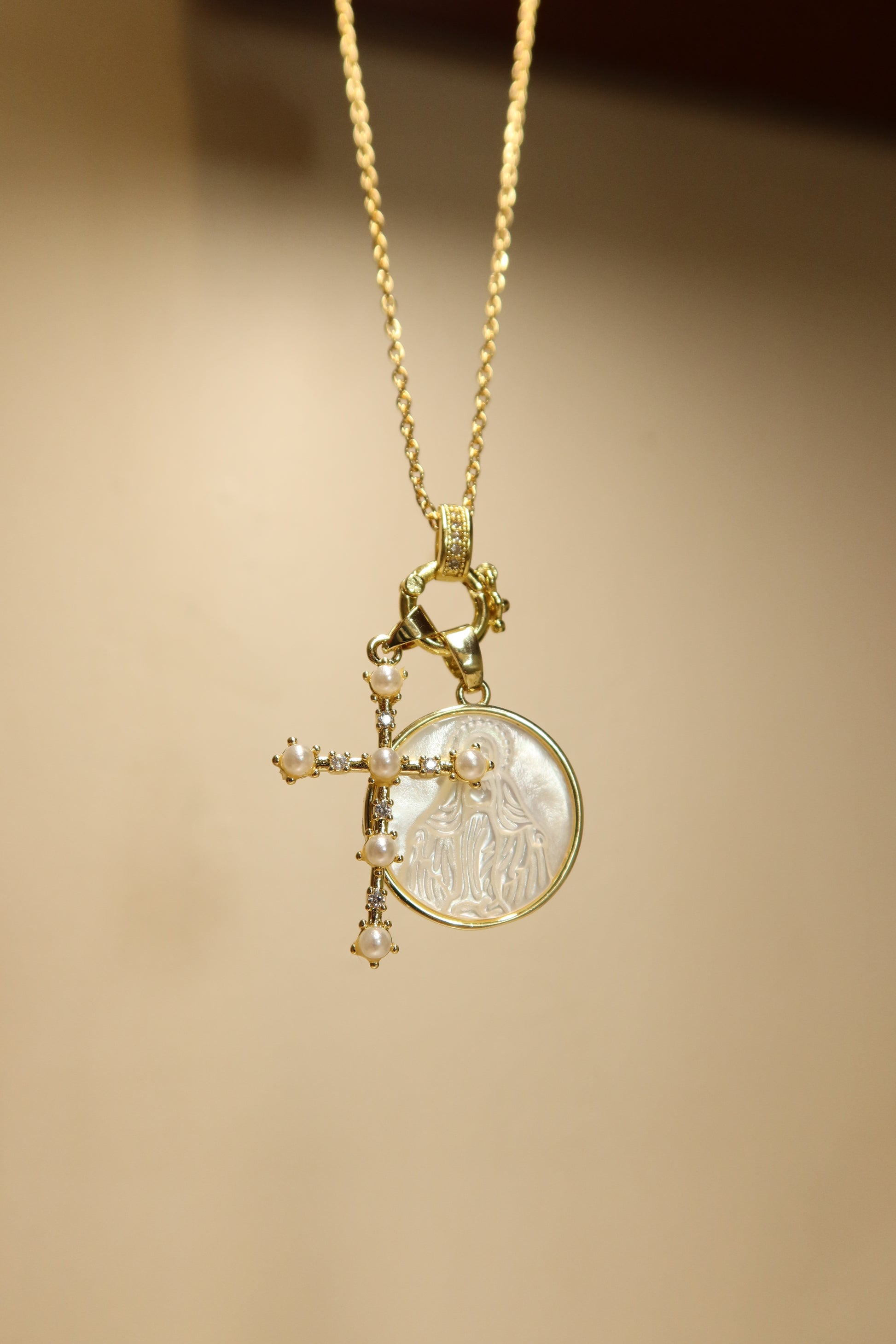 - Immaculate Conception Pearl Pendant + Pearl Cross