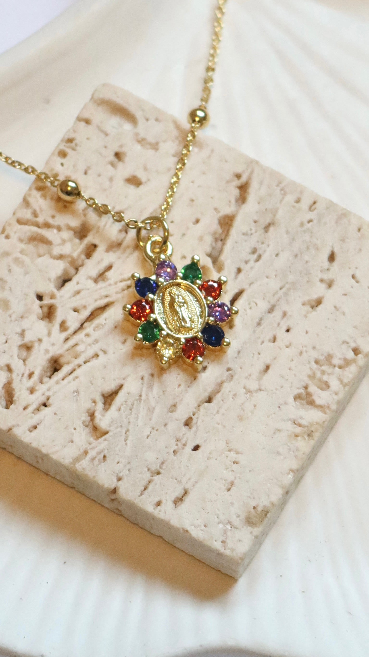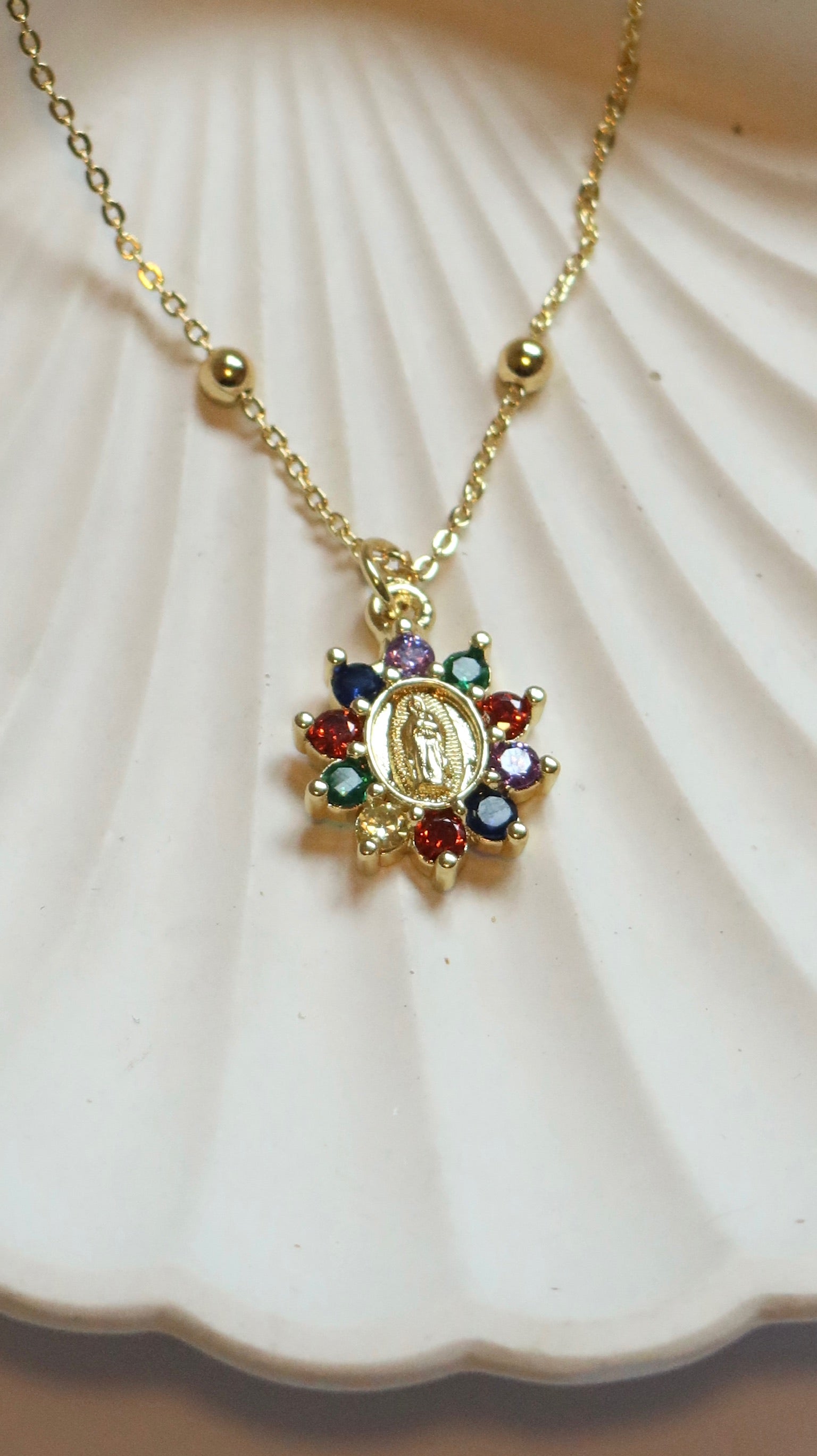 Mini Multicolored Our Lady of Guadalupe Necklace