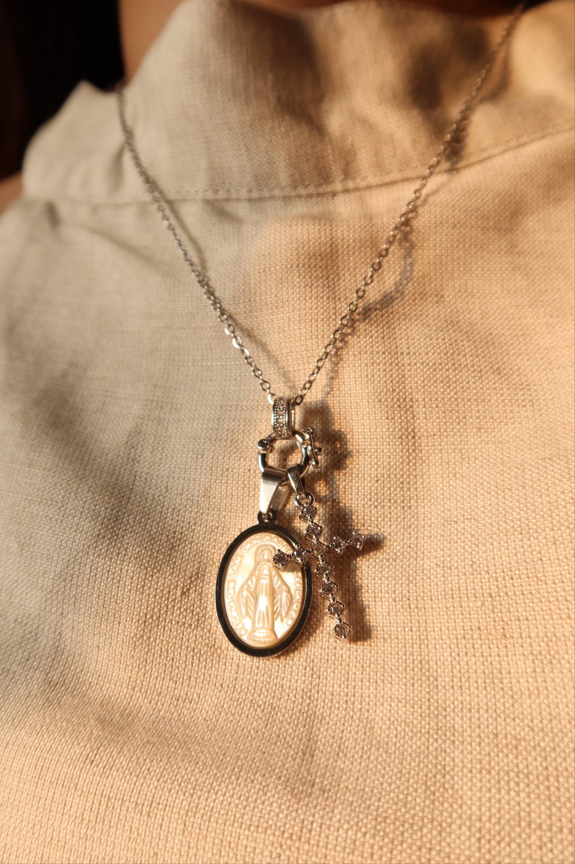 The pearl Miraculous Medal — a quiet symbol of grace, purity, and the comforting presence of Mary in our everyday lives.