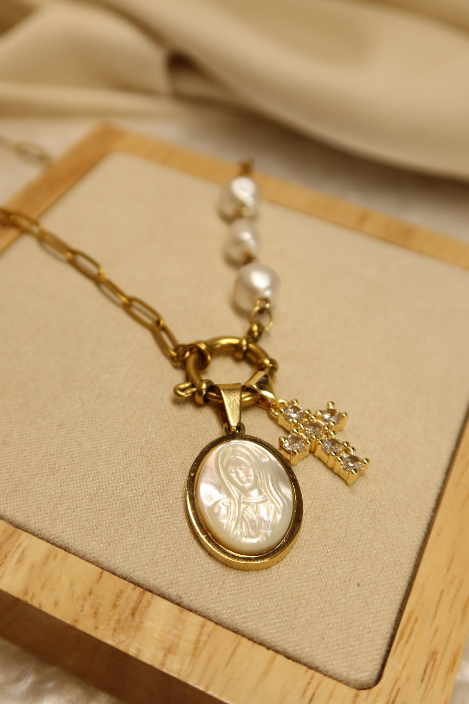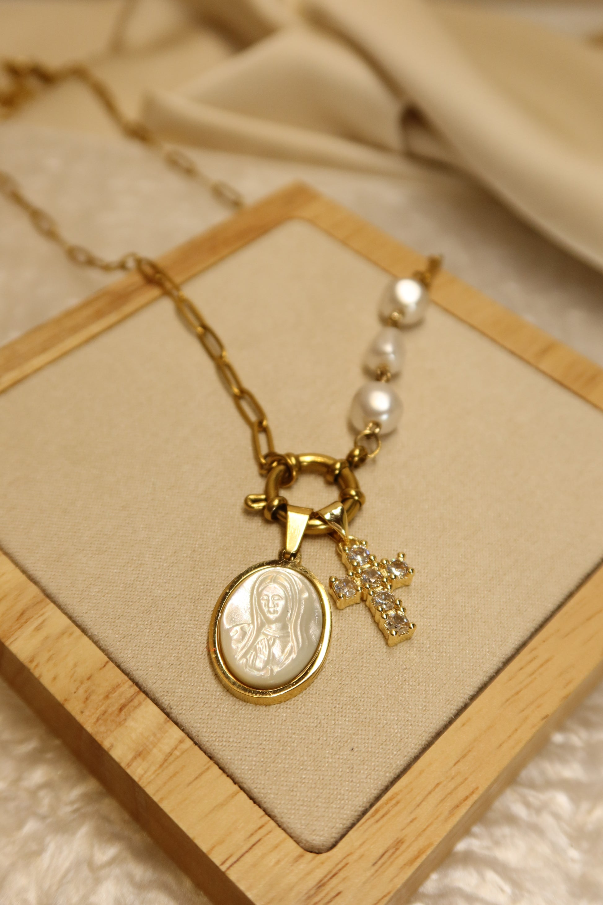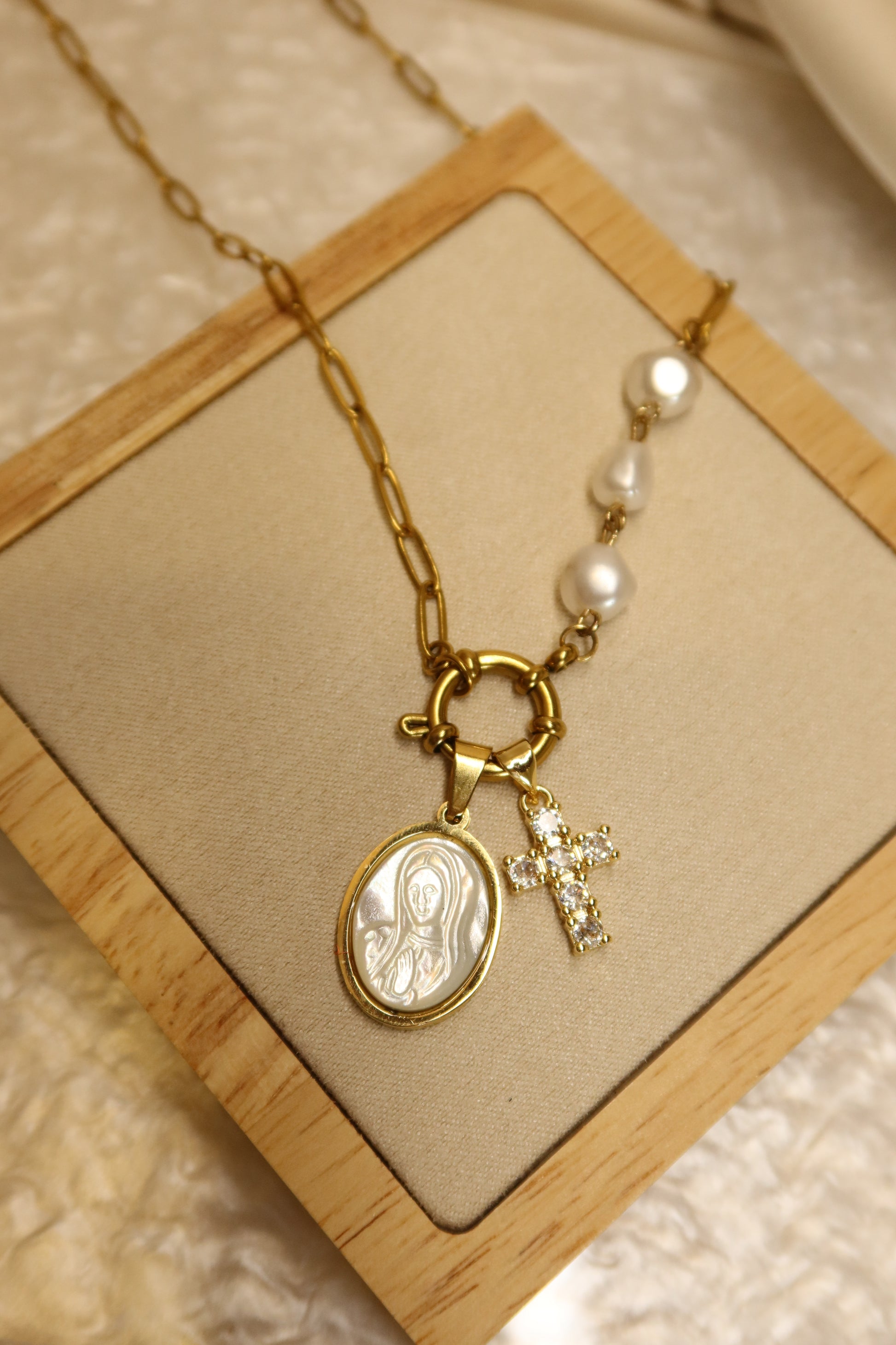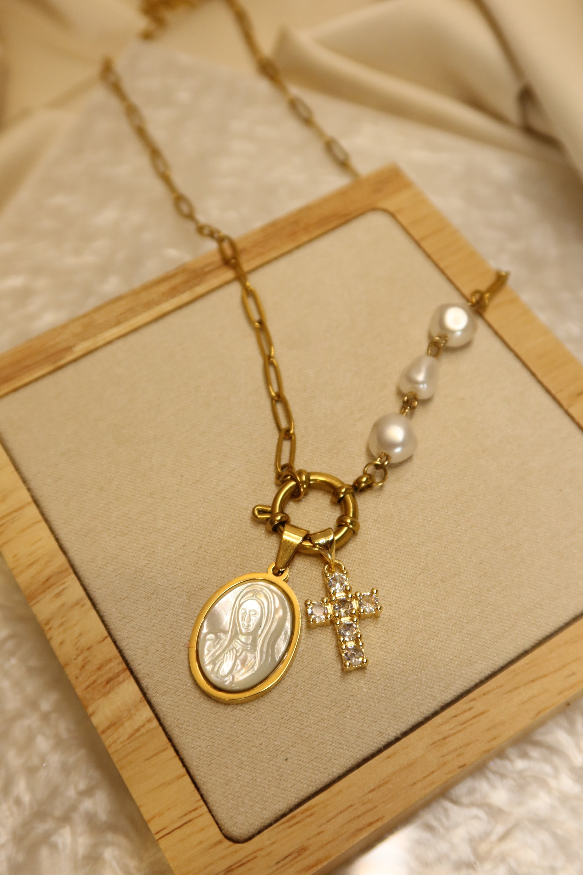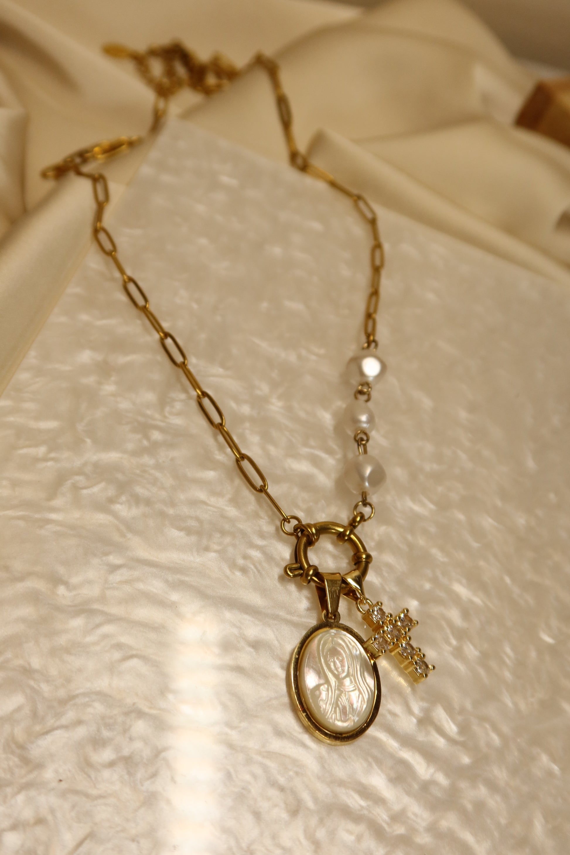 Mother Mary Pearl Necklace Pair