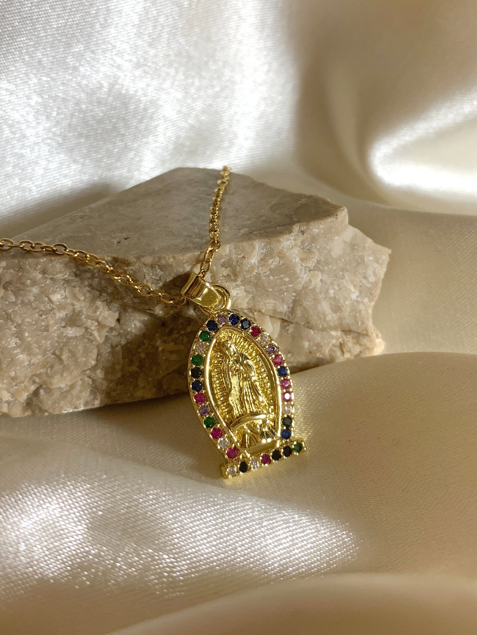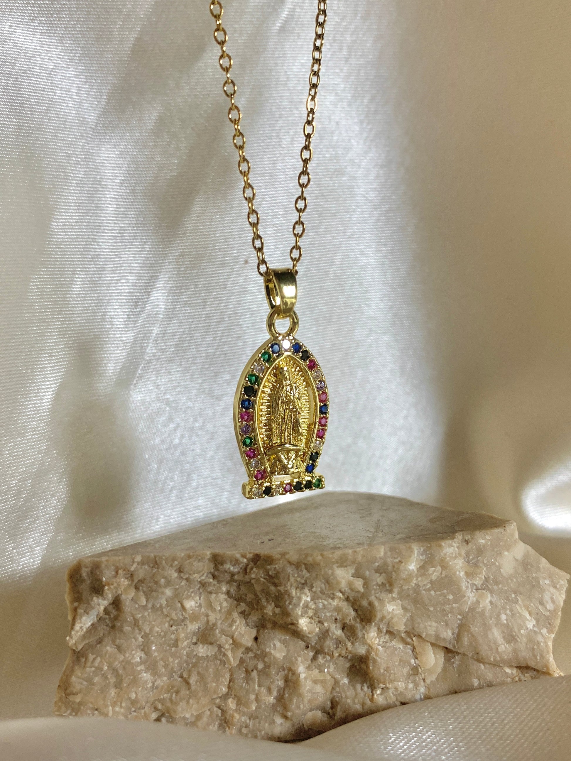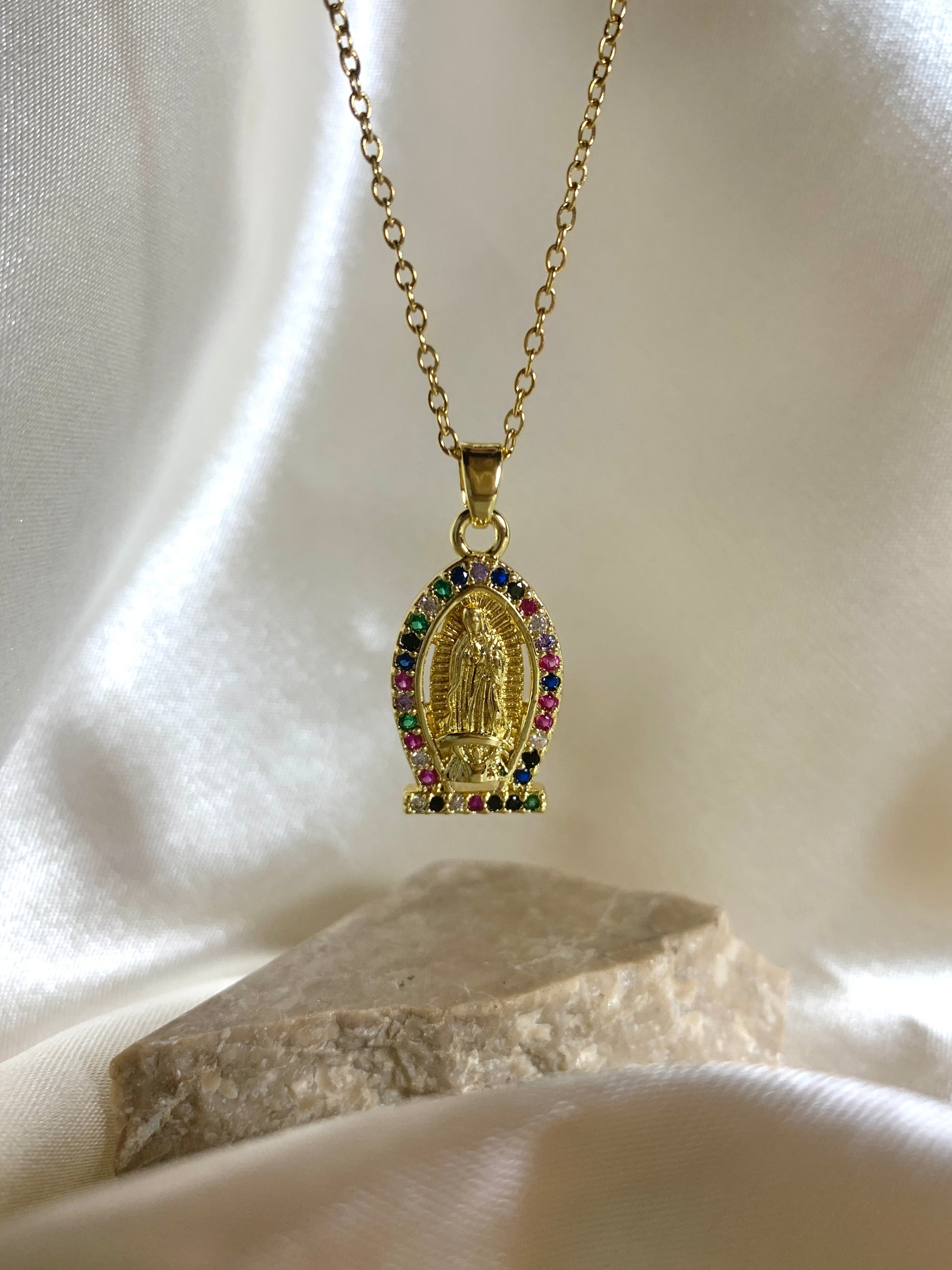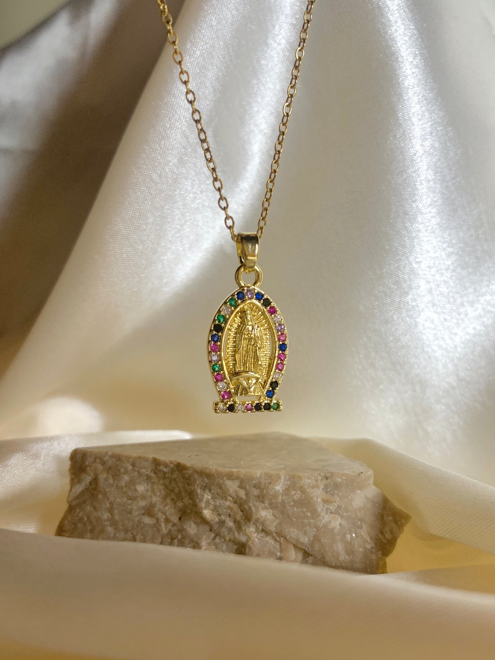 Our Lady of Guadalupe Multicolored Crystal Necklace