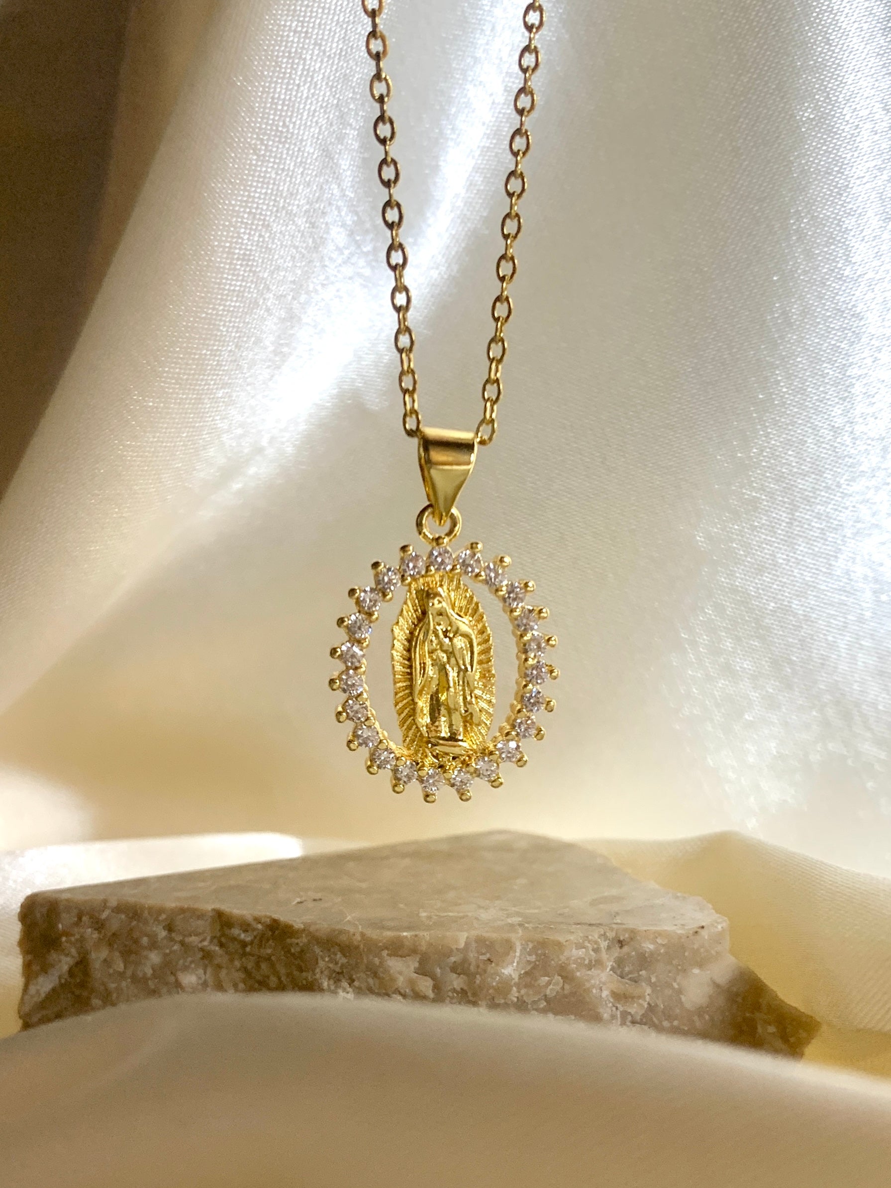 Our Lady of Guadalupe White Crystal Necklace