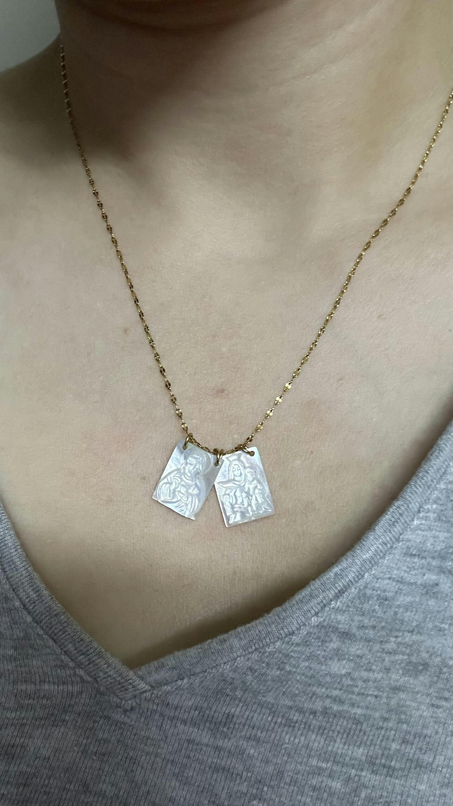 Discover the beauty of faith with our modern pearl scapular. Designed for today's believer, it's more than just an accessory—it's a symbol of divine connection and protection. Wearing the pearl scapular isn't just an act of adornment but a deliberate choice to walk in faith, cloaked in the promises of grace and divine guidance. Wear it and feel the comfort of faith close to your heart, every day.