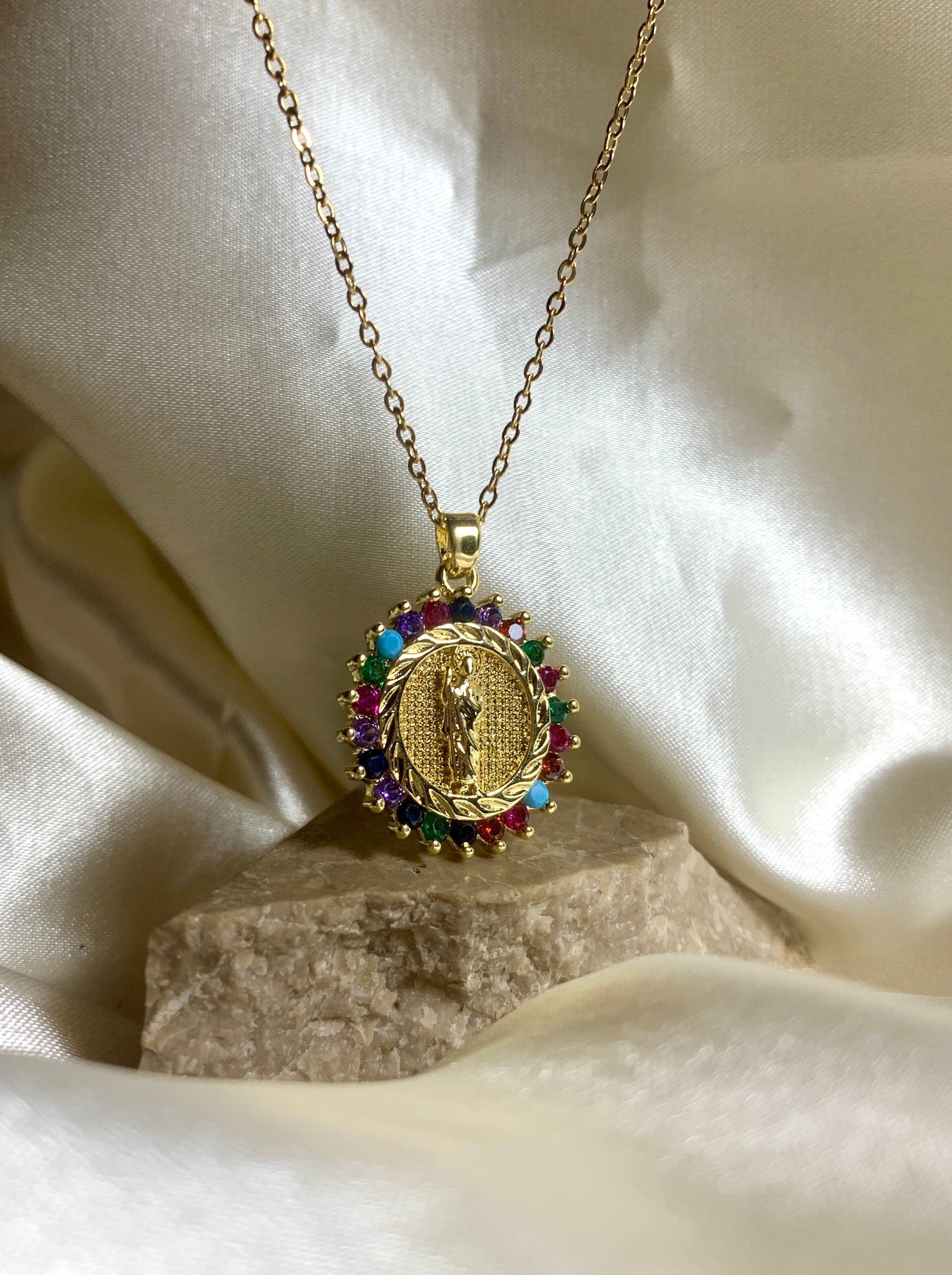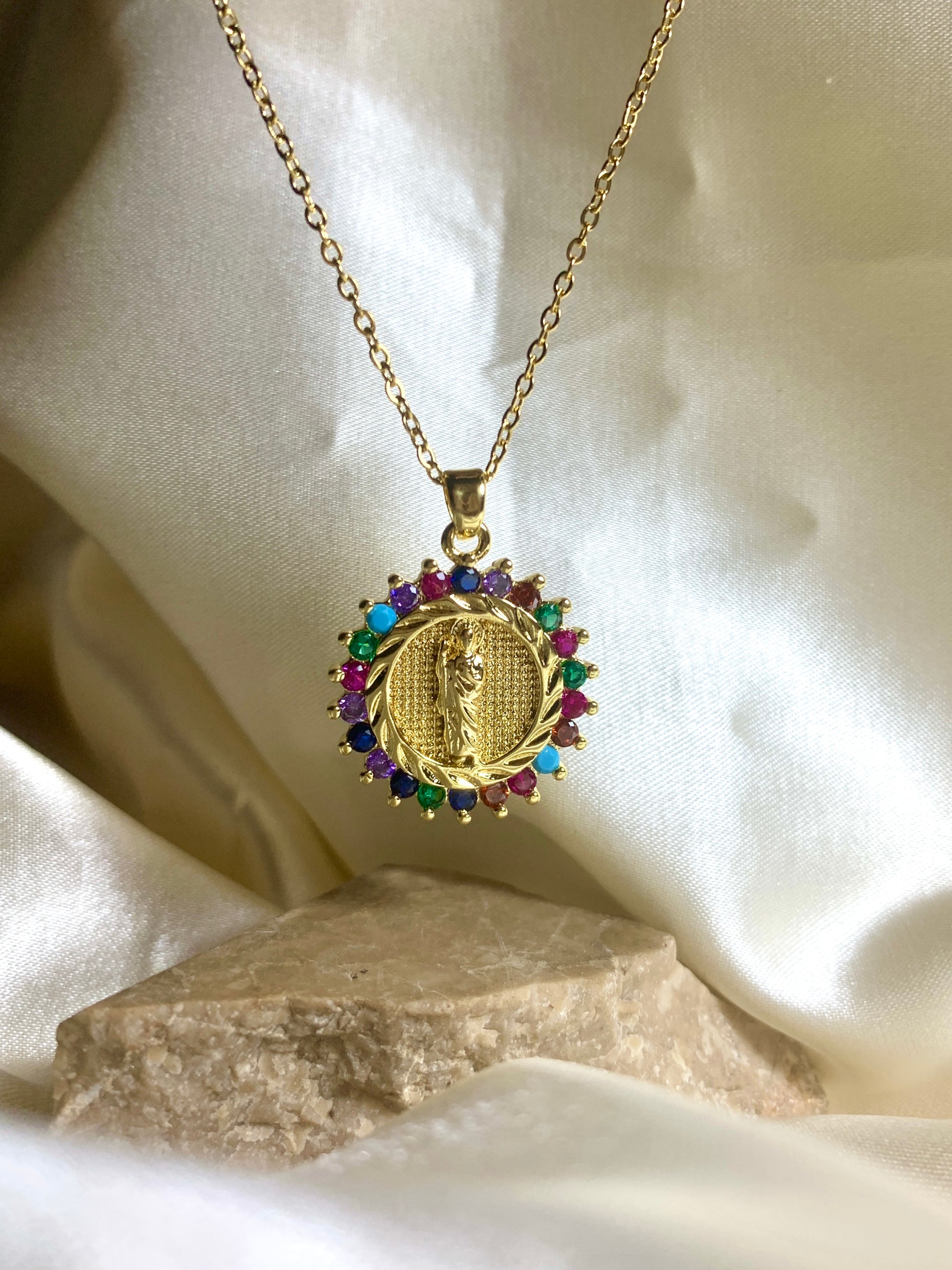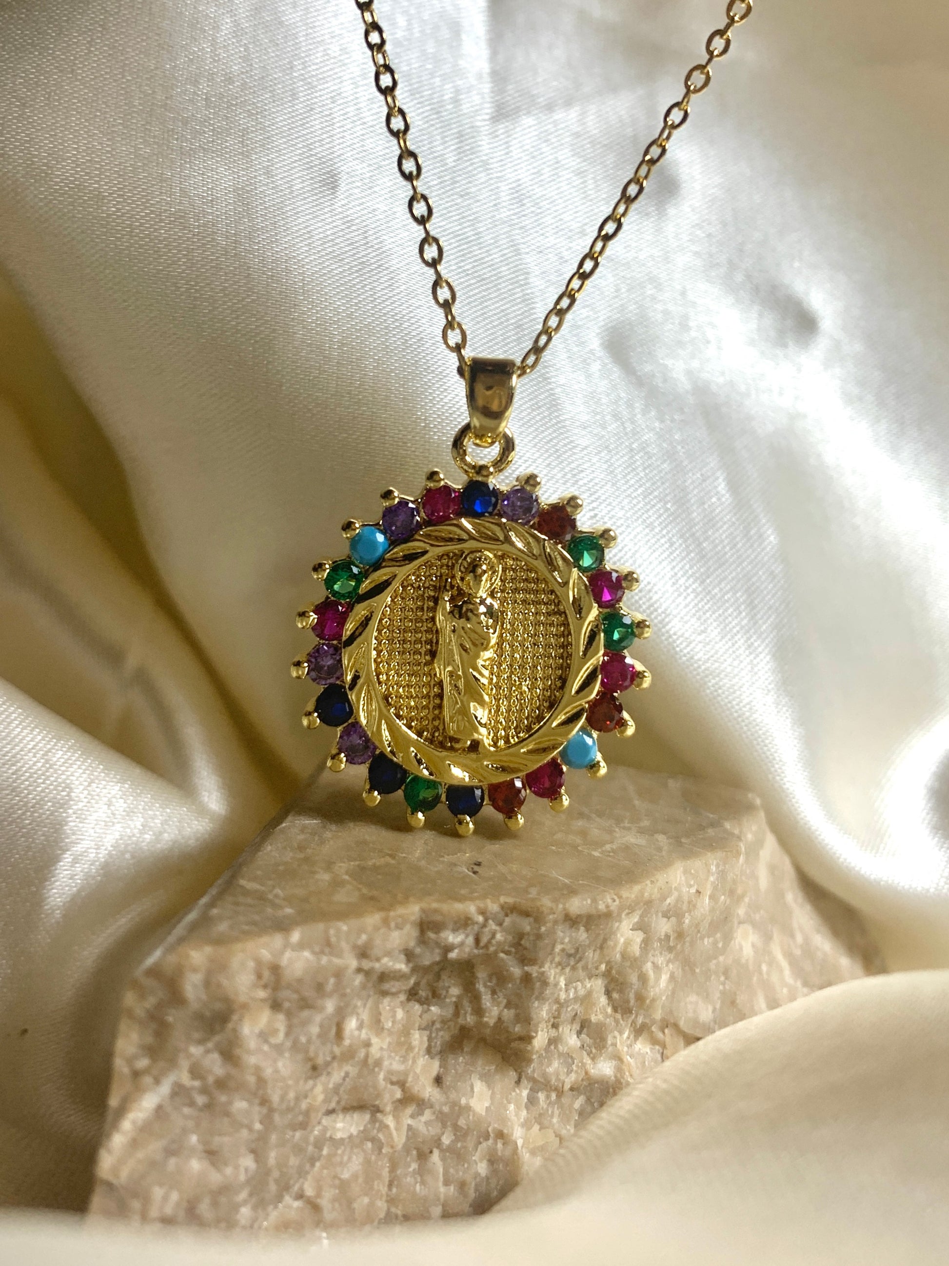 The St. Jude Thaddeus pendant is a cherished religious symbol venerated as the patron saint of desperate situations and hopeless causes. Believers wear the St. Jude Thaddeus pendant as a sign of hope and faith, seeking his intercession in times of dire need. It serves as a reminder of divine assistance and the power of unwavering faith, offering solace and inspiration to those facing challenging circumstances.
