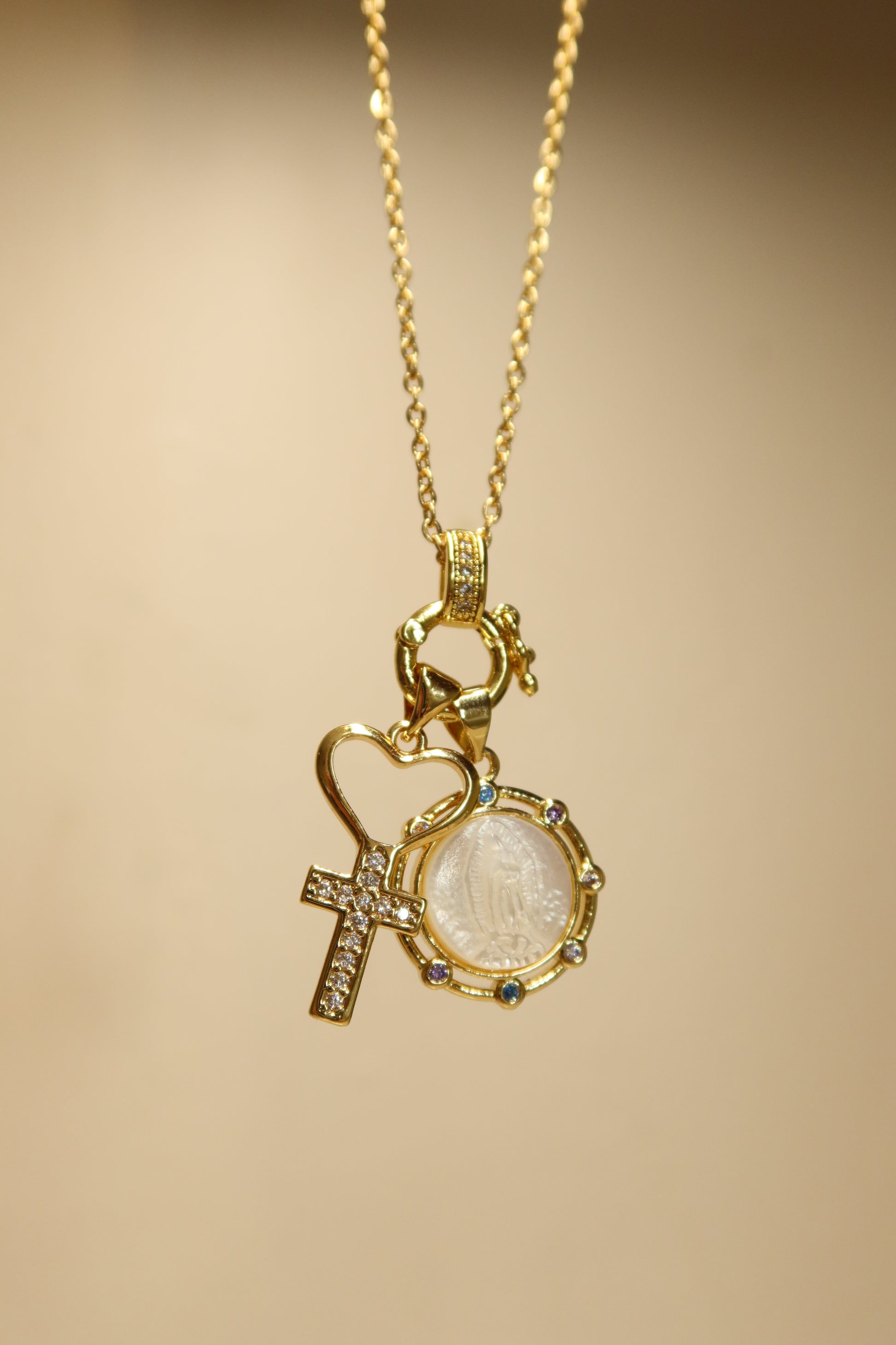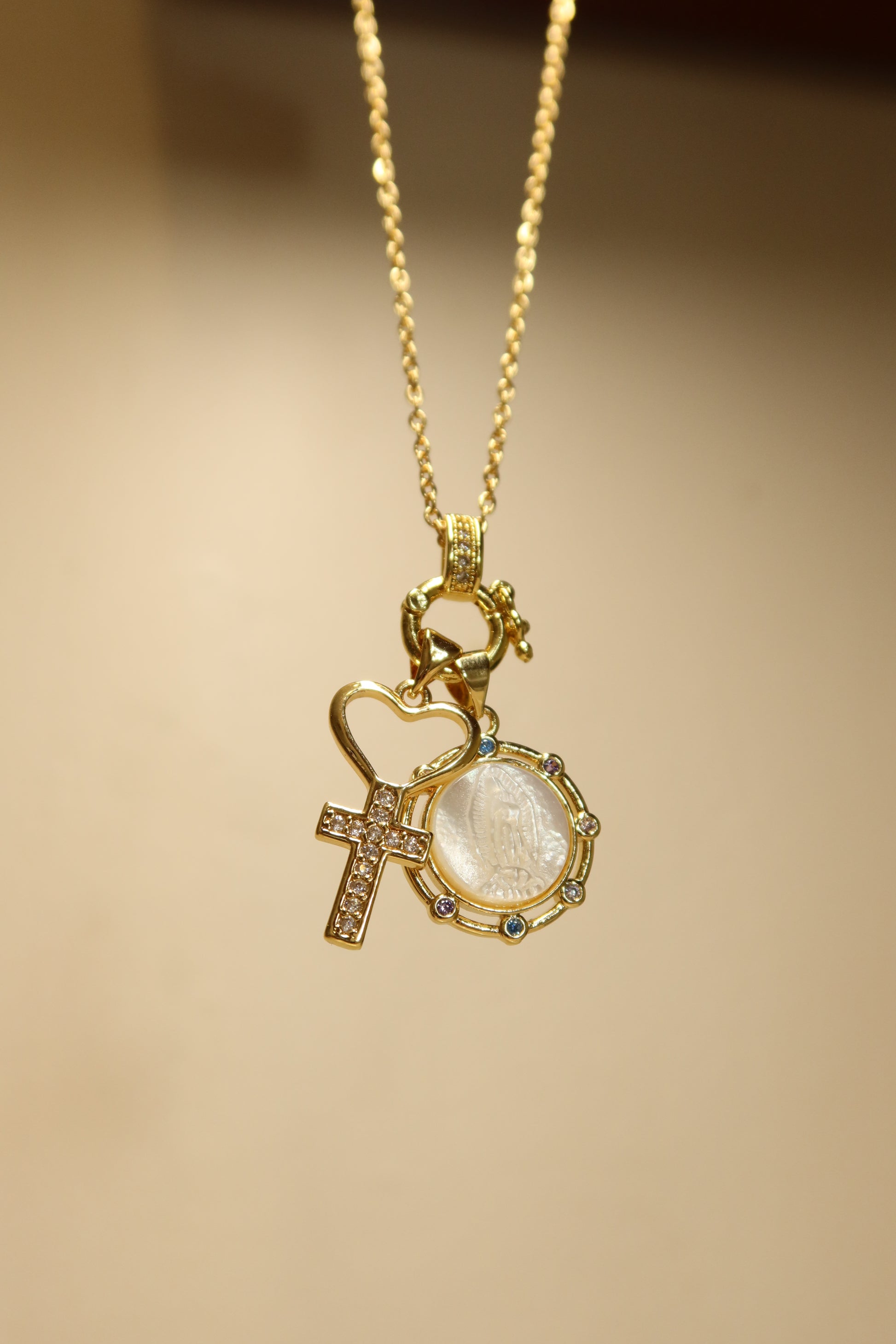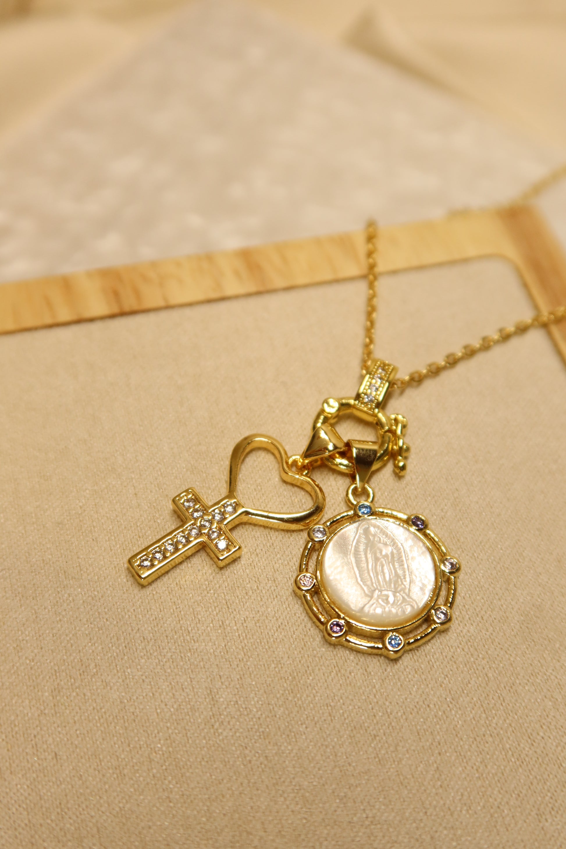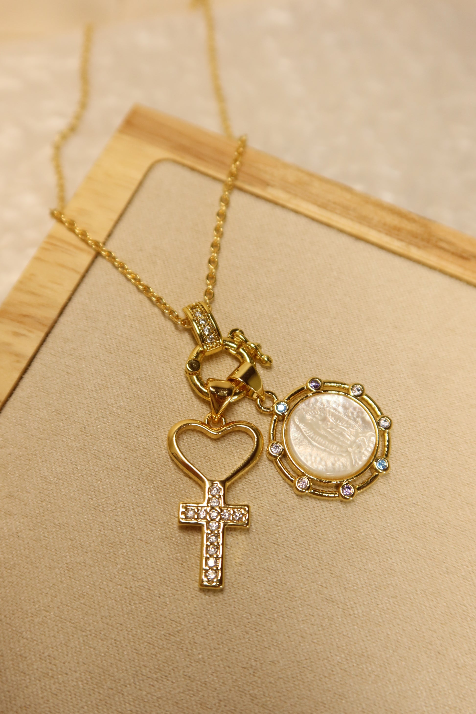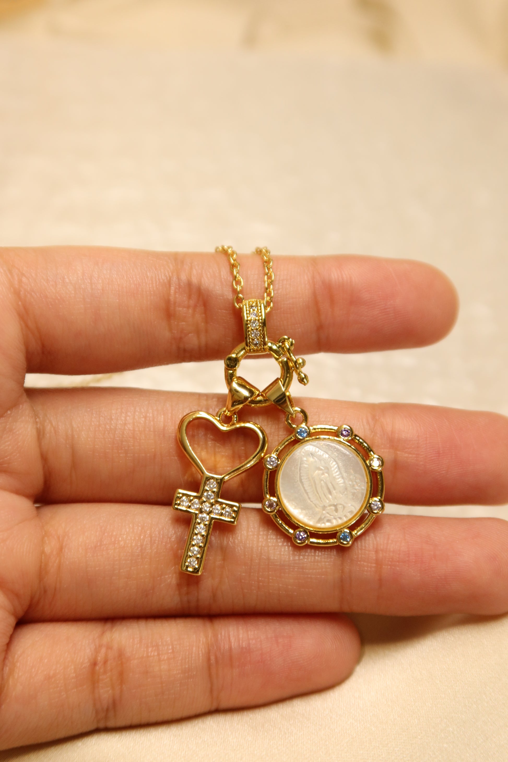 - Our Lady of Guadalupe Pearl Pendant + cross